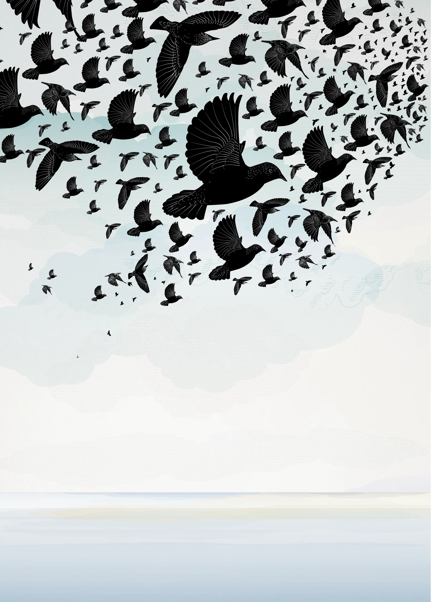 Our murmuration triptych depicts the awesome sight of the starlings on Brighton seafront.